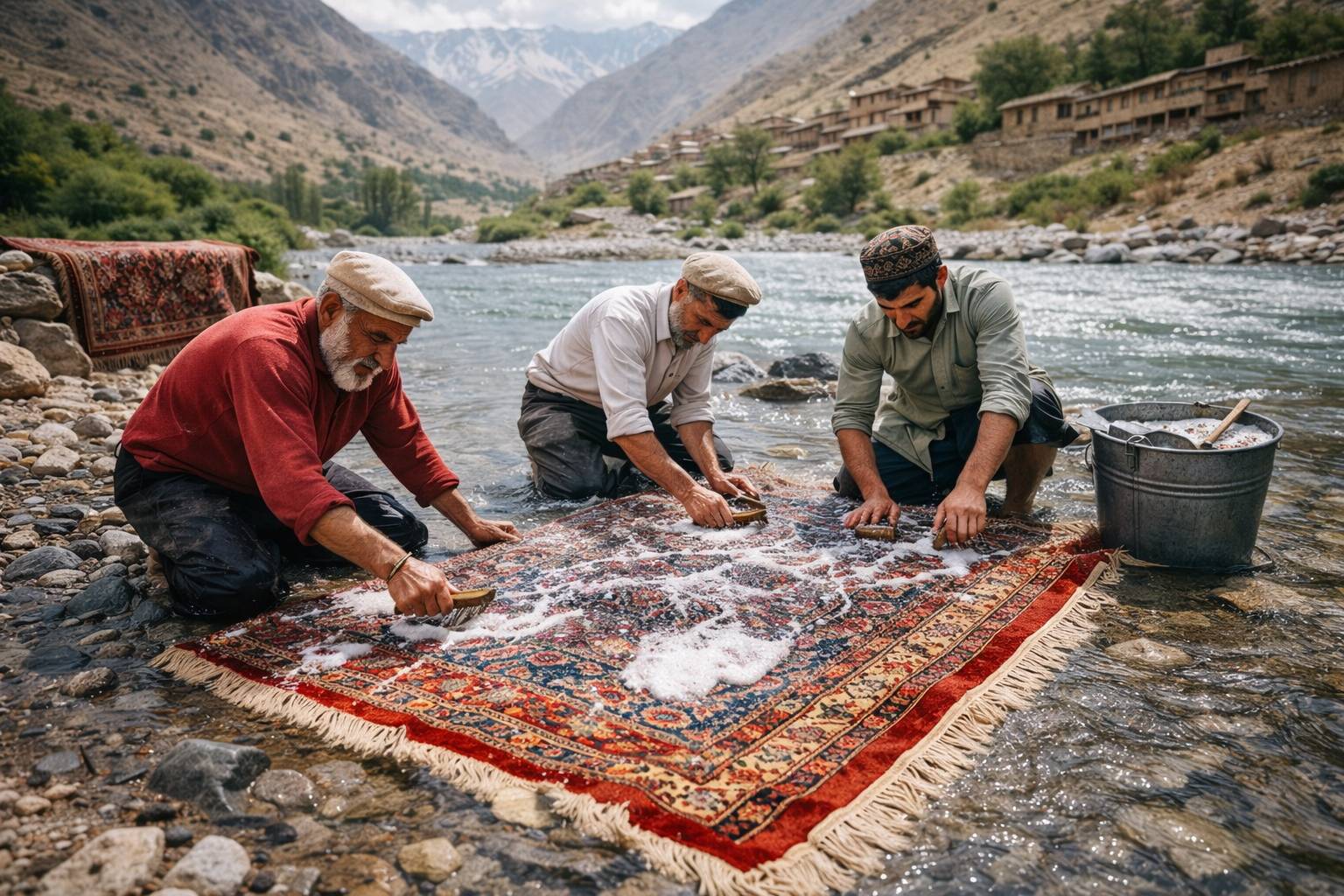 در گذشتههای نهچندان دور، شستشوی فرش بیشتر در حیاط خانهها، کنار رودخانهها یا آبانبارها انجام میشد. خانوادهها معمولاً در فصل بهار یا پیش از مناسبتهای خاص، فرشها را جمع میکردند و با کمک اعضای خانه یا همسایهها به شستن آنها میپرداختند. استفاده از آب فراوان، چوب، برسهای دستی و صابونهای طبیعی رایجترین روش شستشو بود.